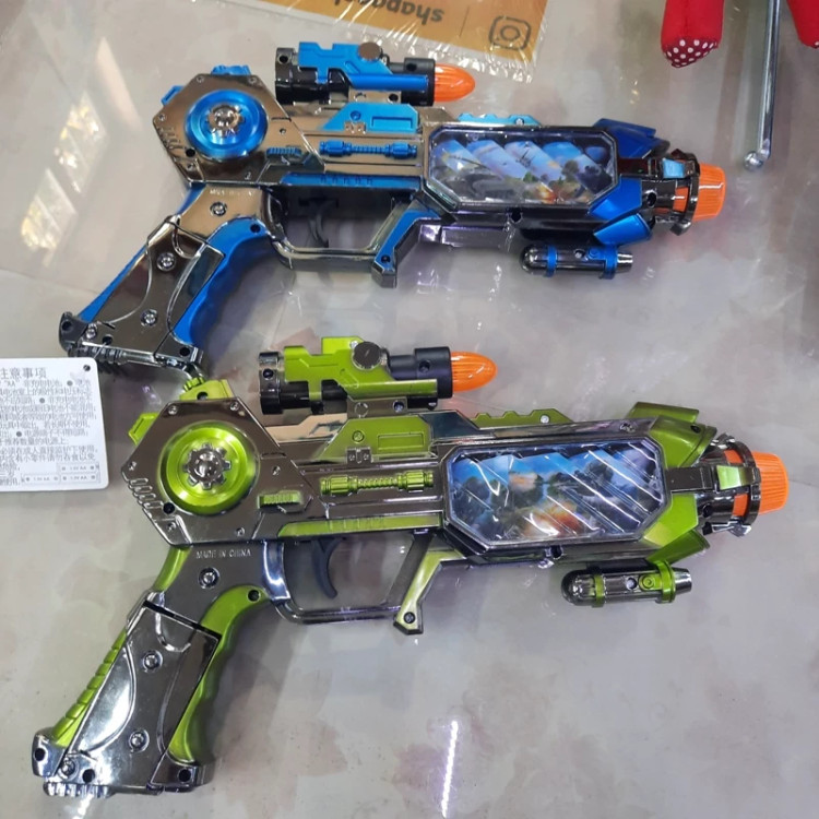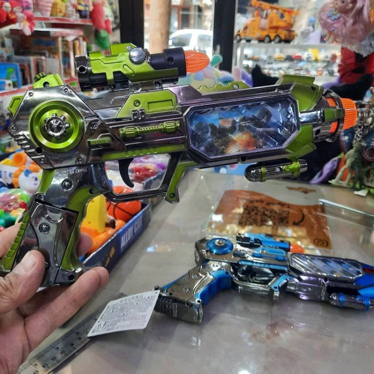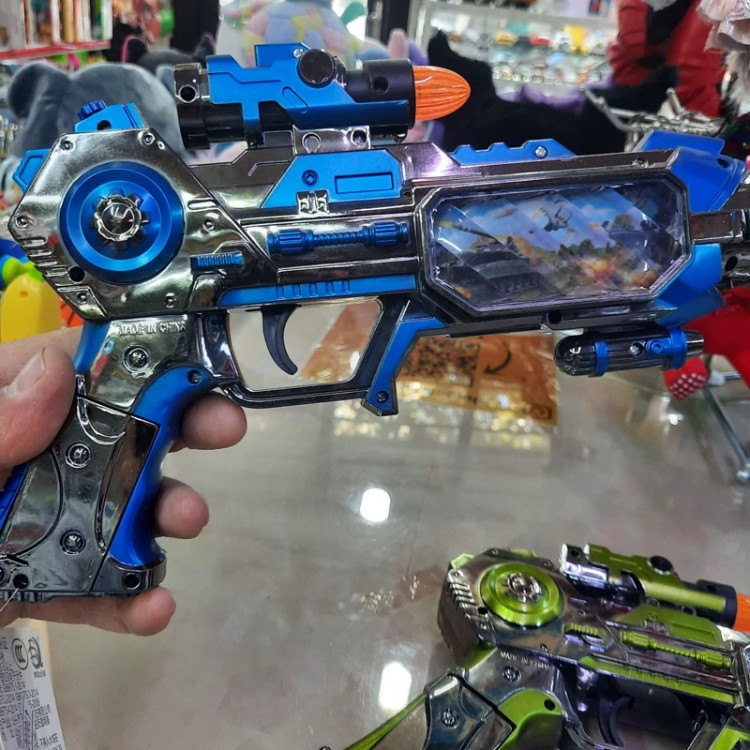 تفنگ موزیکال چراغدار با چکاندن ماشه تصویر حرکت و نور و صدا دارد ،وارداتی نوع بسته بندی سلفونی نیاز به سه عدد باطری قلمی دارد