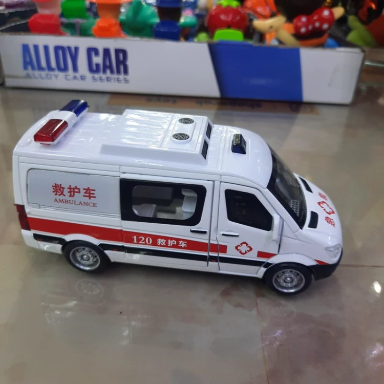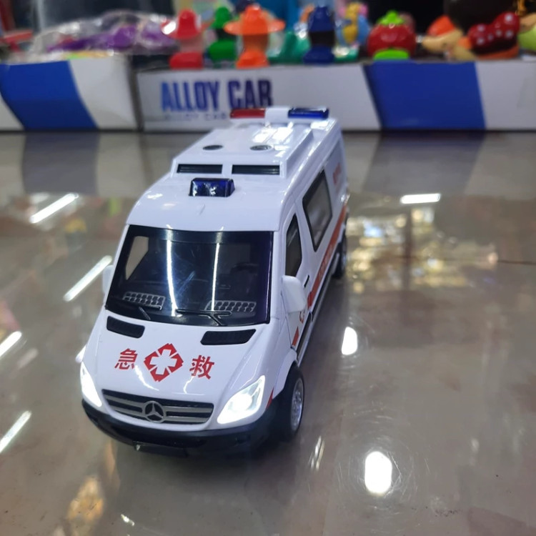 ماکت فلزی آمبولانس موزیکال (آژیردار) چراغدار عقب کش پنج در بازشو محصولی وازداتی