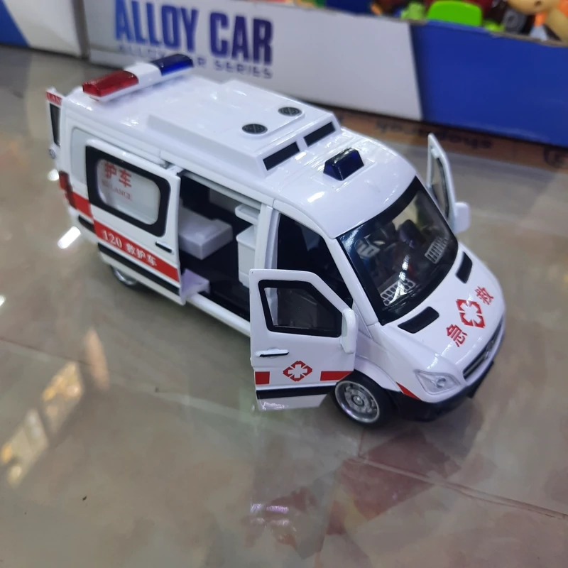ماکت فلزی آمبولانس موزیکال (آژیردار) چراغدار عقب کش پنج در بازشو محصولی وازداتی