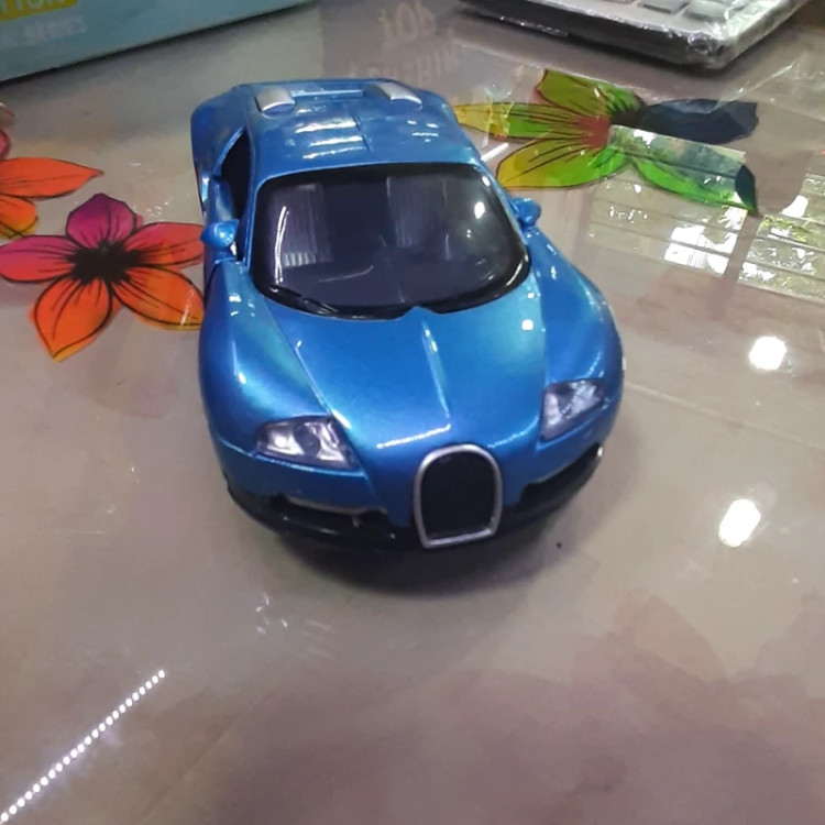 ماکت فلزی بوگاتی موزیکال چراغدار دو در بازشو رنگ آبی عقب کش محصولی وارداتی از چین