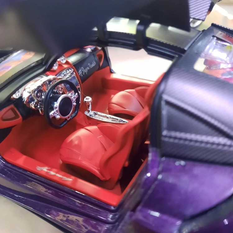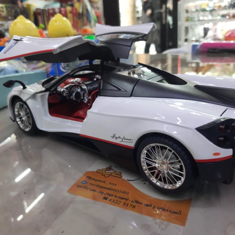 ماکت فلزی پاگانی سایز 1/18 .موزیکال چراغدار،عقب کش ،فرمان پذیر ،دارای بوق روی فرمان ،مانیتور چراغدار ،چهار در باز شو ،محصولی وارداتی برند هوایرا چه ژی با کیفیت و سنگین وزن با طراحی بسیار زیبا