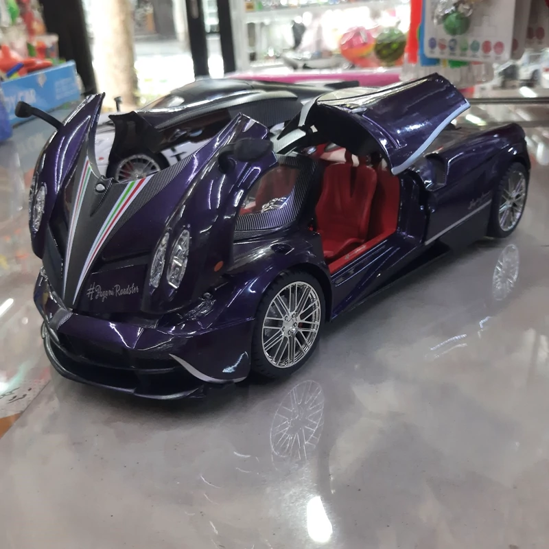ماکت فلزی پاگانی سایز 1/18 .موزیکال چراغدار،عقب کش ،فرمان پذیر ،دارای بوق روی فرمان ،مانیتور چراغدار ،چهار در باز شو ،محصولی وارداتی برند هوایرا چه ژی با کیفیت و سنگین وزن با طراحی بسیار زیبا