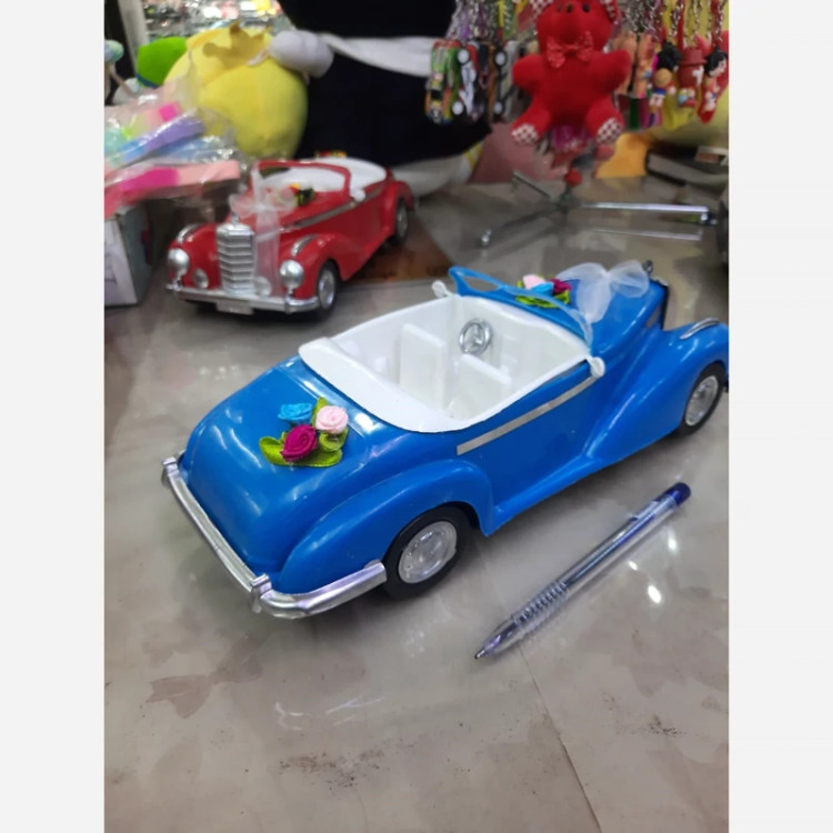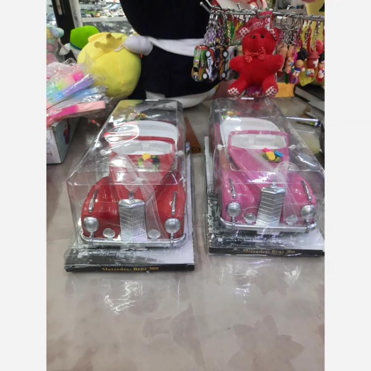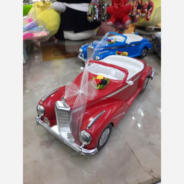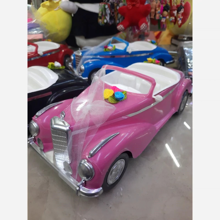 ماشین بنز 300 قدیمی بدون سقف ،گل زده برای عروس در رنگهای شاد جنش آن پلاستیک و نوع بسته بندی طلقی است .