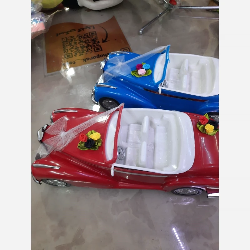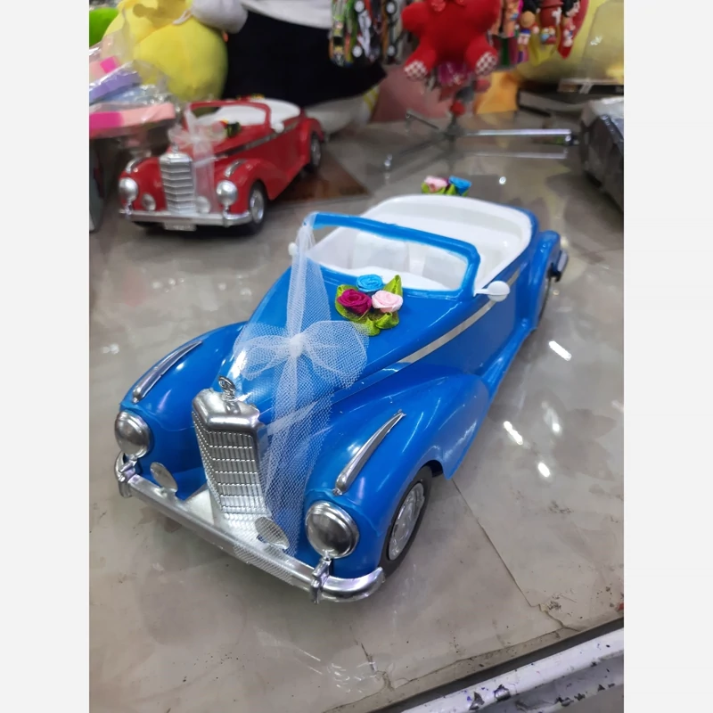 ماشین بنز 300 قدیمی بدون سقف ،گل زده برای عروس در رنگهای شاد جنش آن پلاستیک و نوع بسته بندی طلقی است .