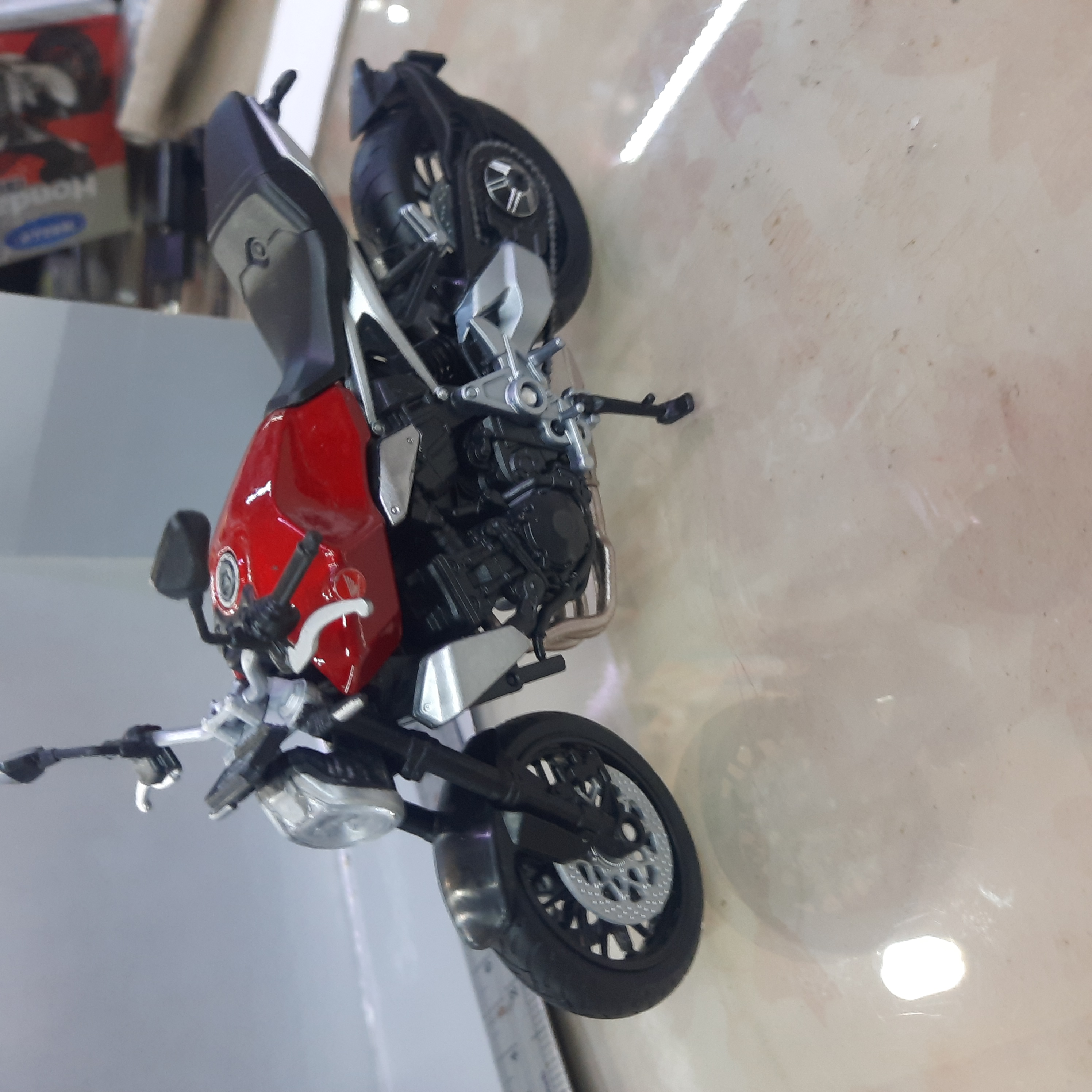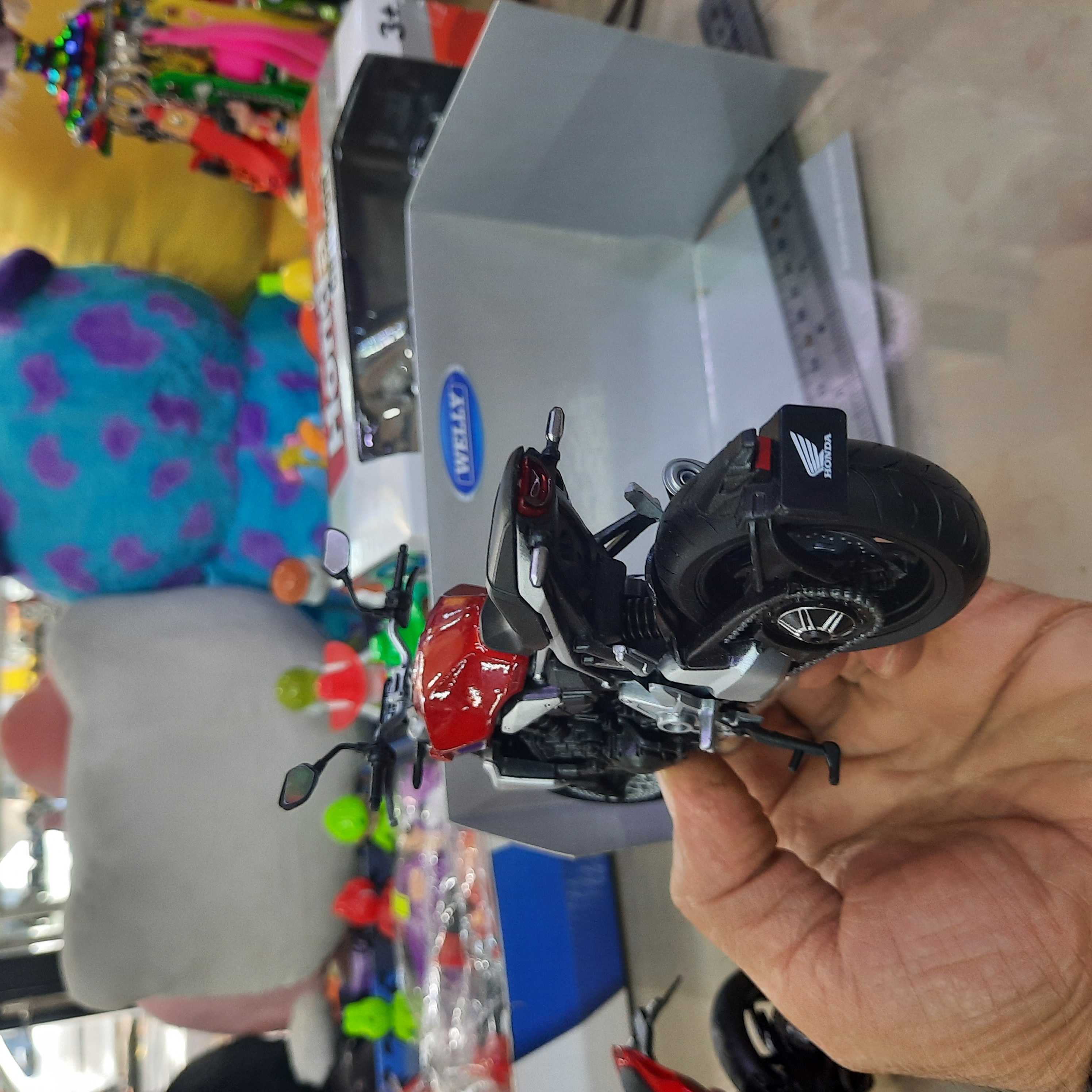 ماکت موتور هوندا سی بی ۱۰۰۰ مقیاس ۱/۱۲ جعبه دار ،عقب موتور فنری ،دارای جک بقل ،فرمان متغییر ،رنگ قرمز ،با جزئیات،چرخهای روان ،برند ویلی چین برای علاقمندان به داشتن ماکتی زیبا برای کلکسیون