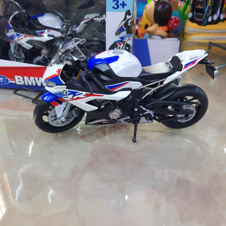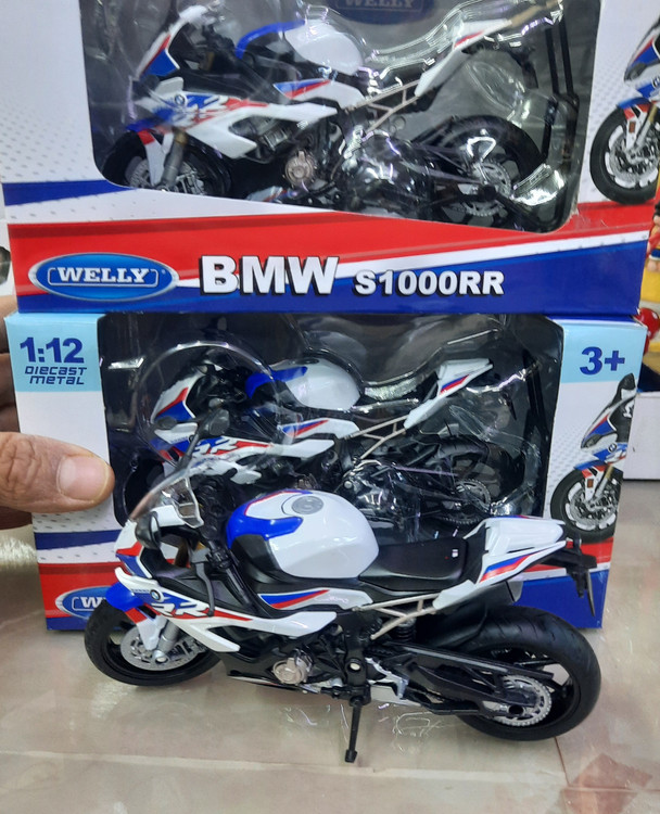 ماکت موتور بی ام و اس ۱۰۰۰آر آر جعبه دار مقیاس ۱/۱۲ تولیدی شرکت ویلی چین ،دارای استند و جک بغل ،فرمان متحرک، چرخهای روان عقب فنری ،با طراحی بسیار زیبا ،برای علاقمندان به کلکسیون