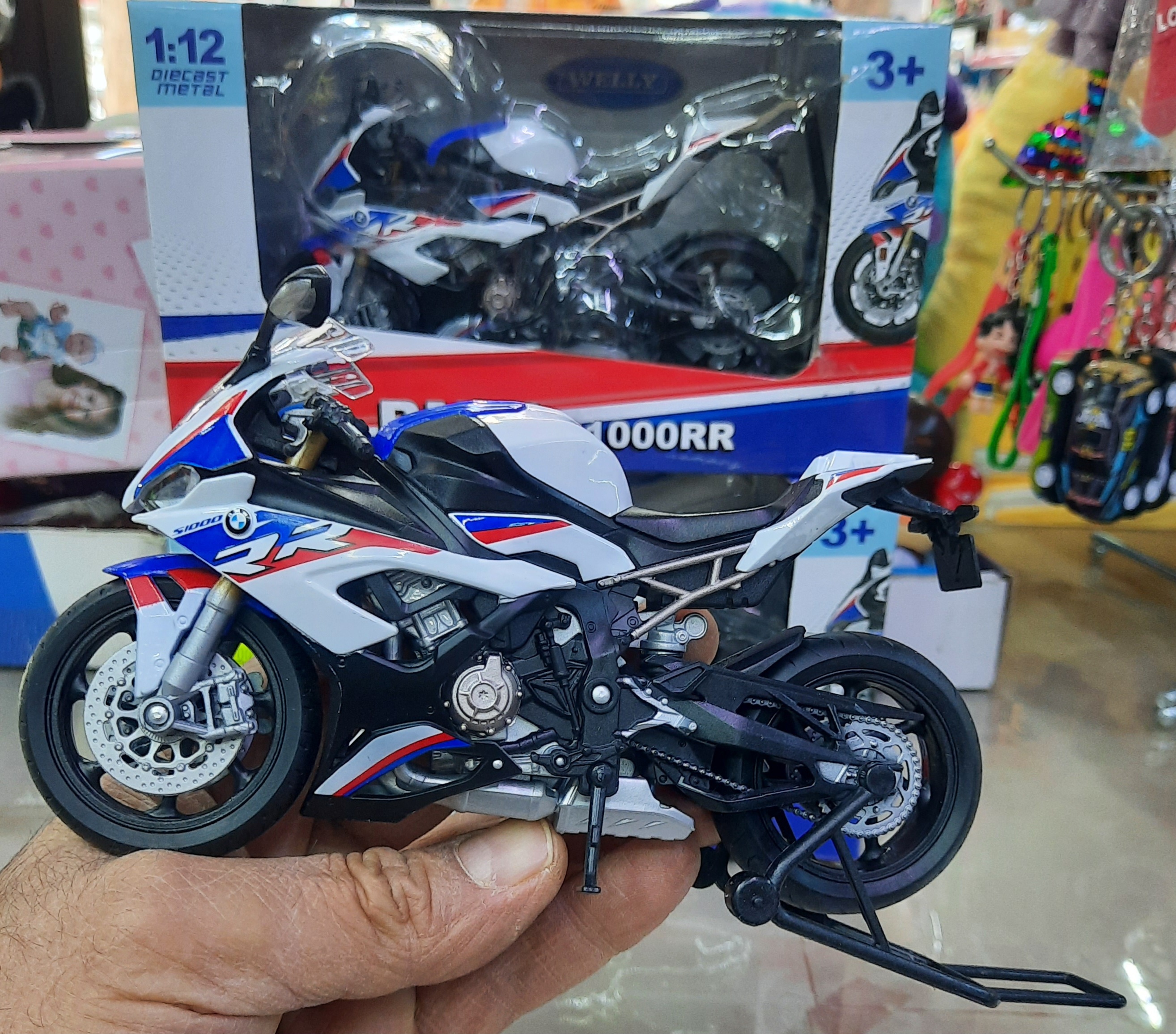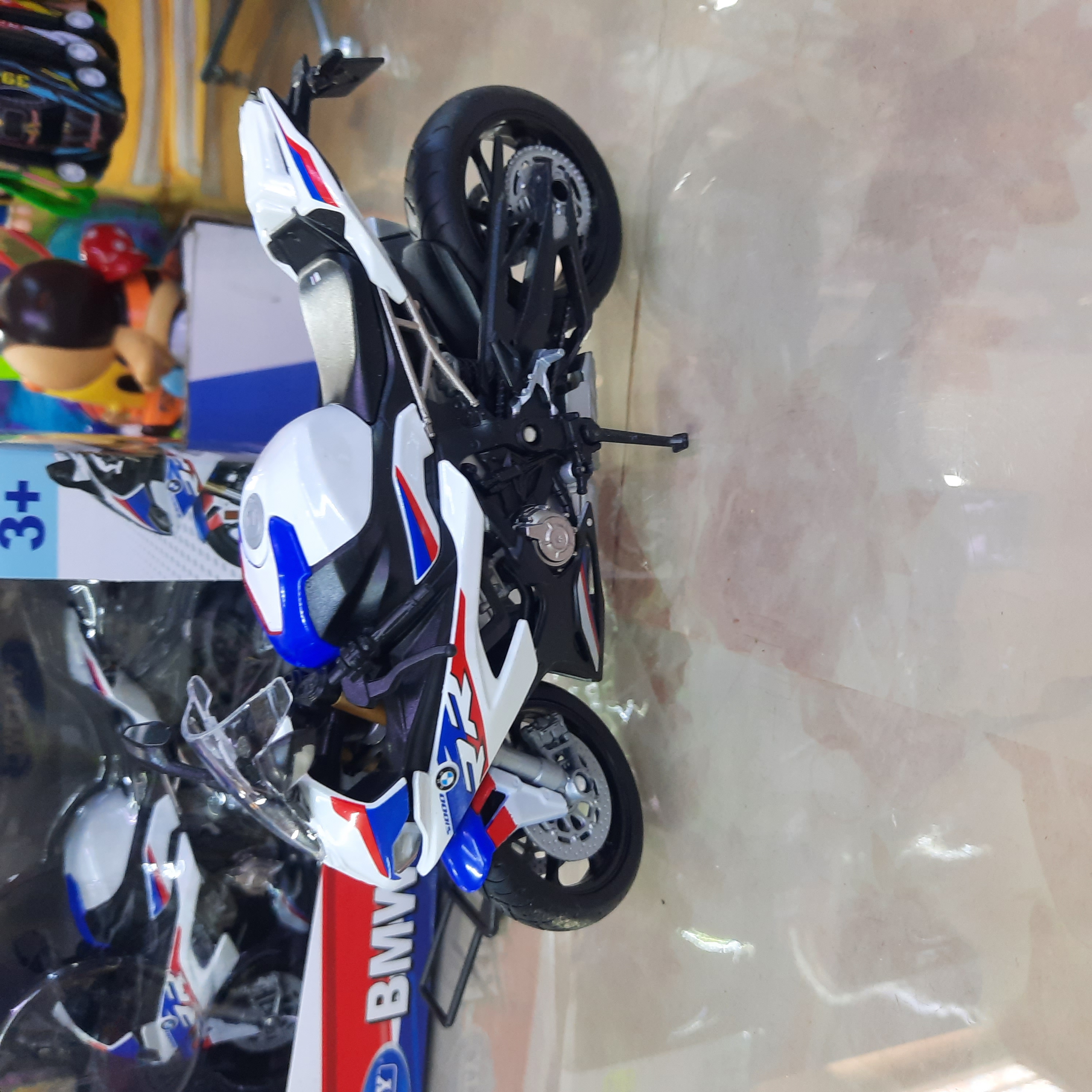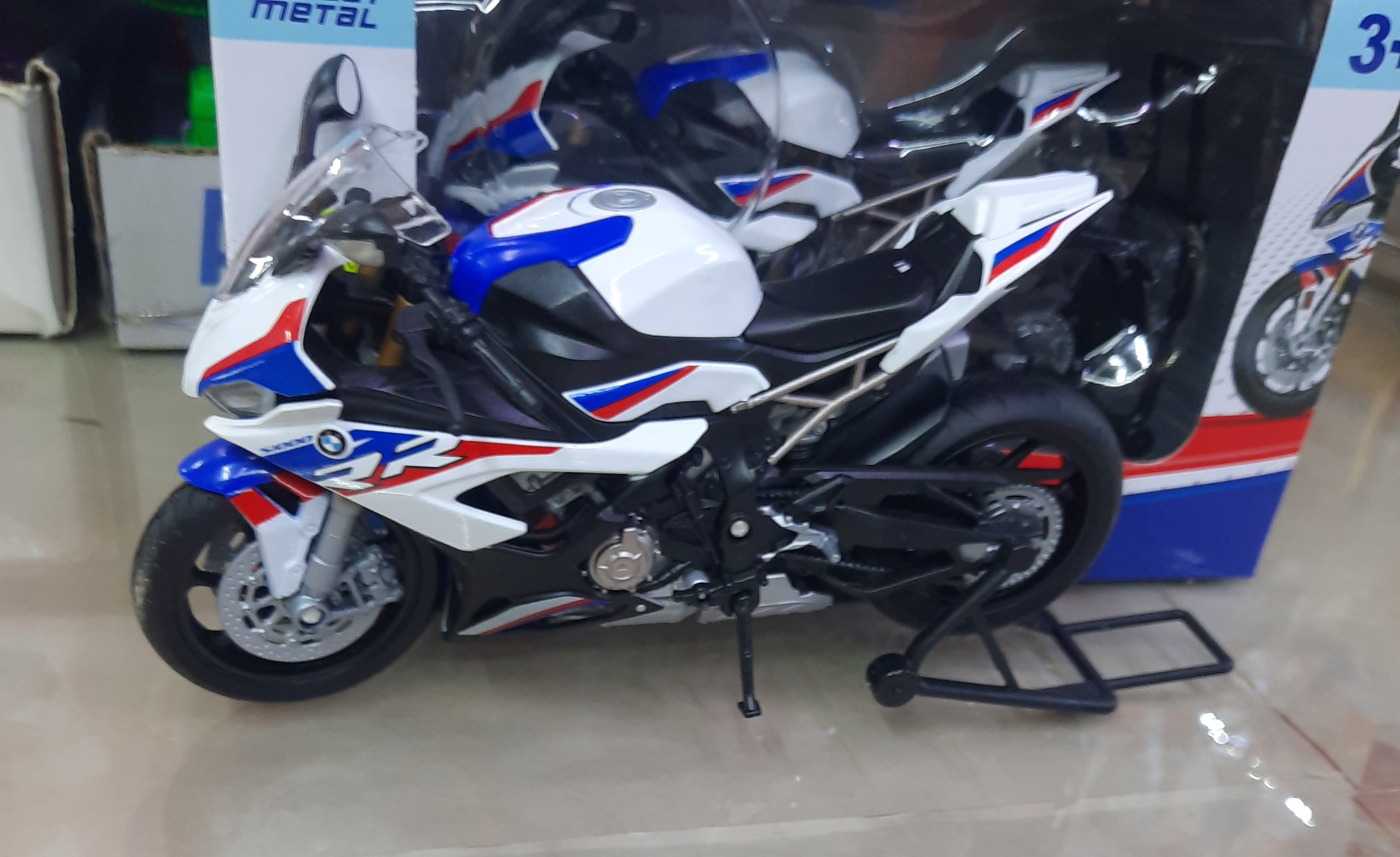 ماکت موتور بی ام و اس ۱۰۰۰آر آر جعبه دار مقیاس ۱/۱۲ تولیدی شرکت ویلی چین ،دارای استند و جک بغل ،فرمان متحرک، چرخهای روان عقب فنری ،با طراحی بسیار زیبا ،برای علاقمندان به کلکسیون