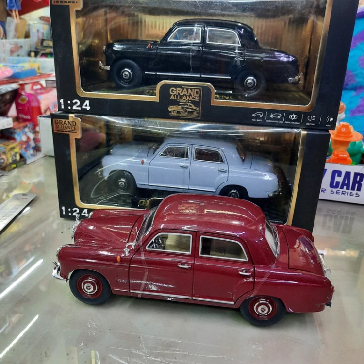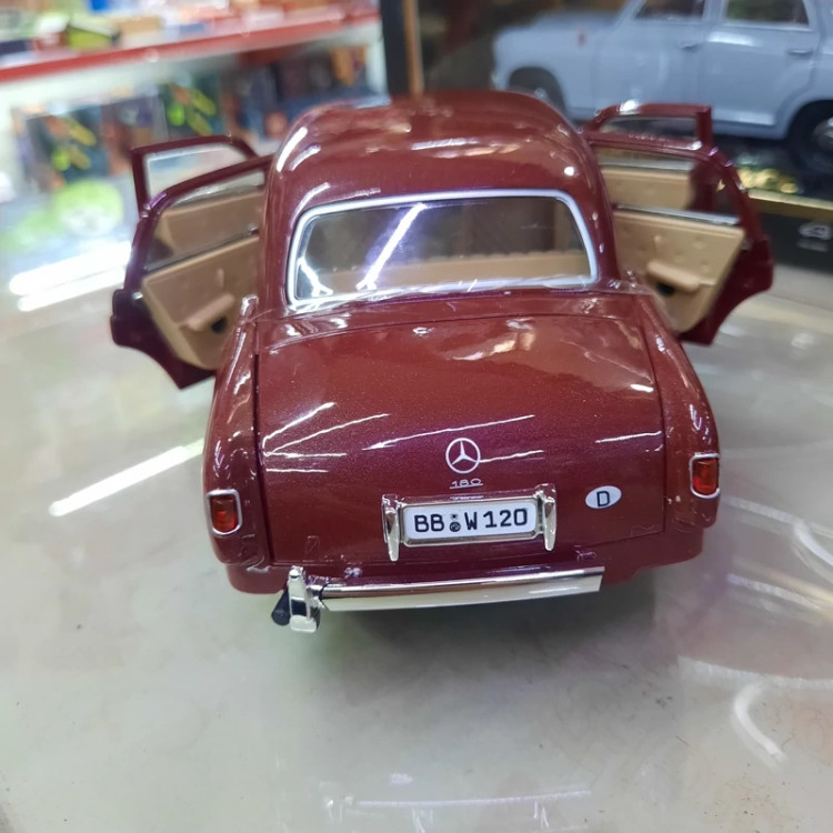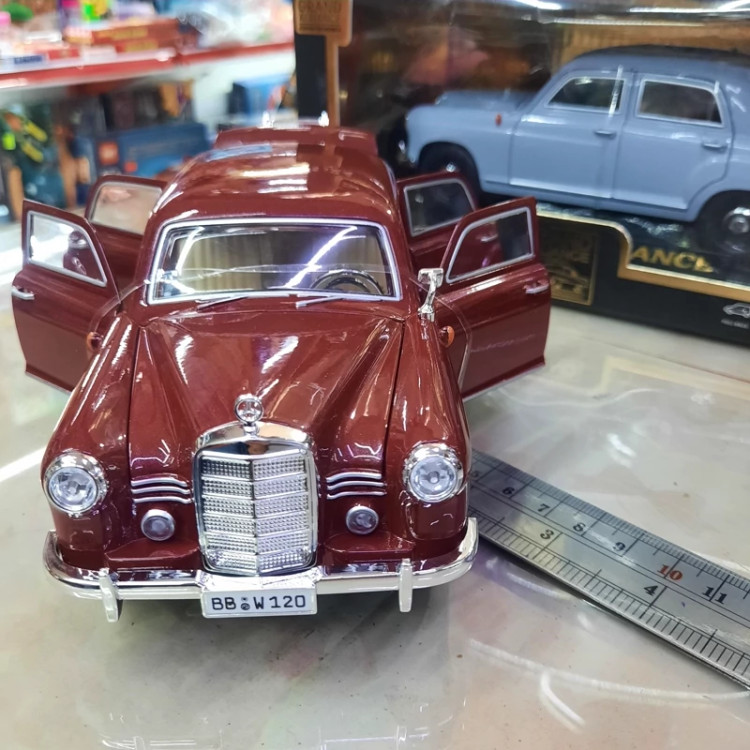 ماکت فلزی بنز کلاسیک قدیمی مدل سال 1953 ،موزیکال چراغدار ،استارت روی فرماو ،فرمان پذیر ،دزدگیر دار ،عقب کش شش در باز شو ، دارای آینه و آرم بنز هر کدام یک عدد اضافه ،