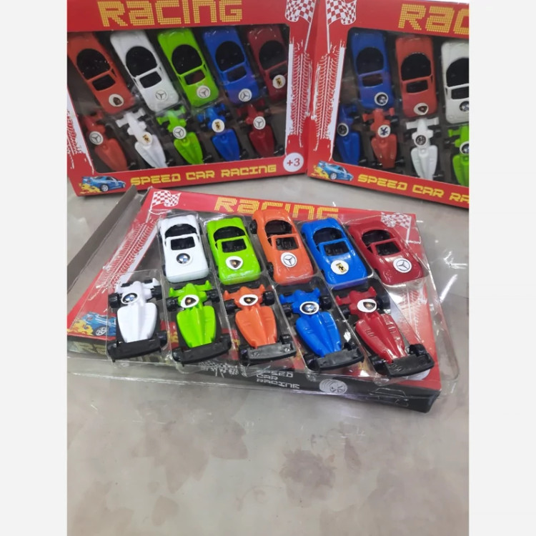 ماشین بسته ده تایی پلاستیکی ،داخل بسته یک ردیف ماشین فراری و ردیف دیگر مسابقه ای در رنگهای مختلف