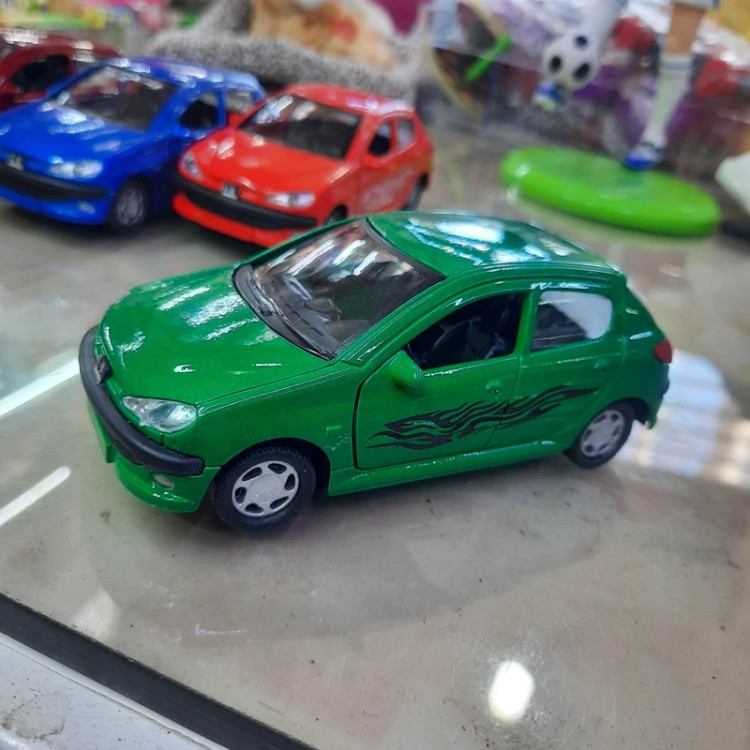 ماکت فلزی پژو 206 ساده با طرح آتشی عقب کش برند طاها ایران در رنگها ی مختلف