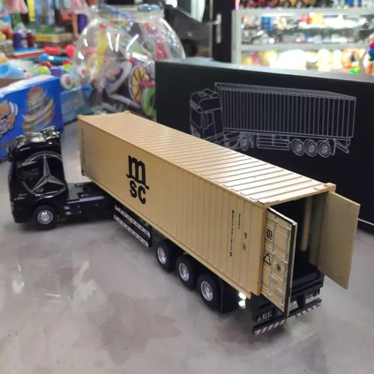 ماکت فلزی کامیون بنز کانتینرداراکتروس موزیکال و چراغ دار