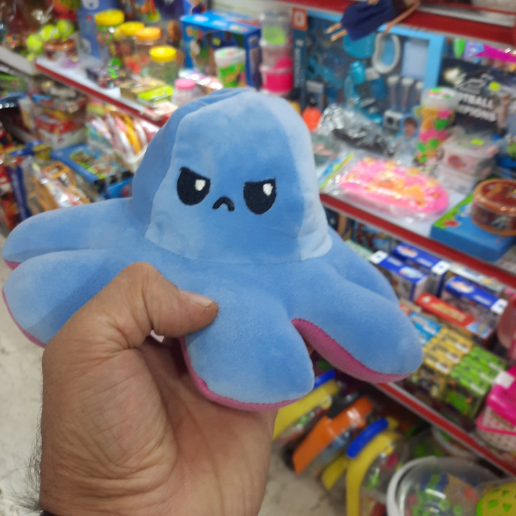 سایر توضیحات: عروسک طرح اختاپوس دو رو که با برگرداندن سمت خوشحال یا عصبانی عروسک، شکل عروسک تغییر پیدا می کند و عصبانی یا خوشحال می شود. با این عروسک ها می توانید حال خودتان را به بقیه نشان دهید بدون اینکه حرفی بزنید!