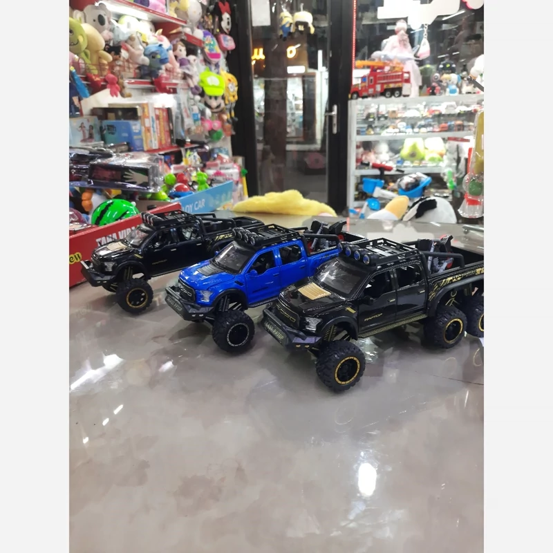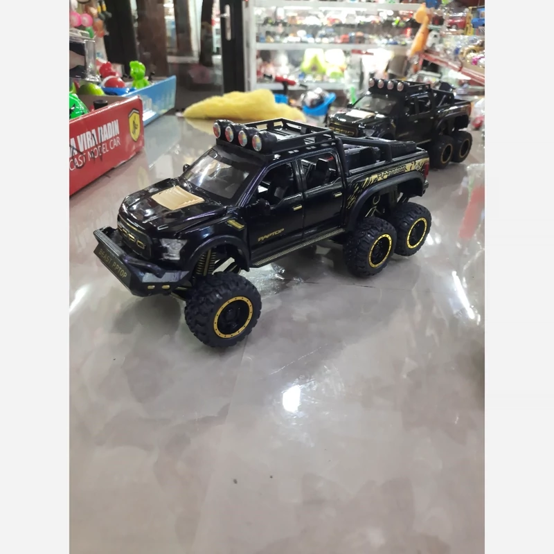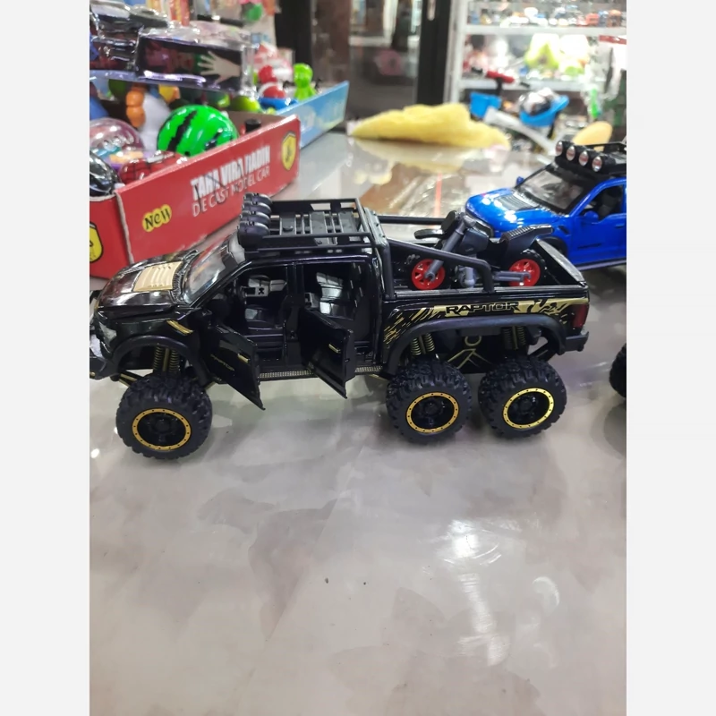 ماکت فلزی وانت فورد رپتور (F150) دوکابین شش در بازشو همراه با موتور (Ford raptor f150) شش چرخ موزیکال چراغدار