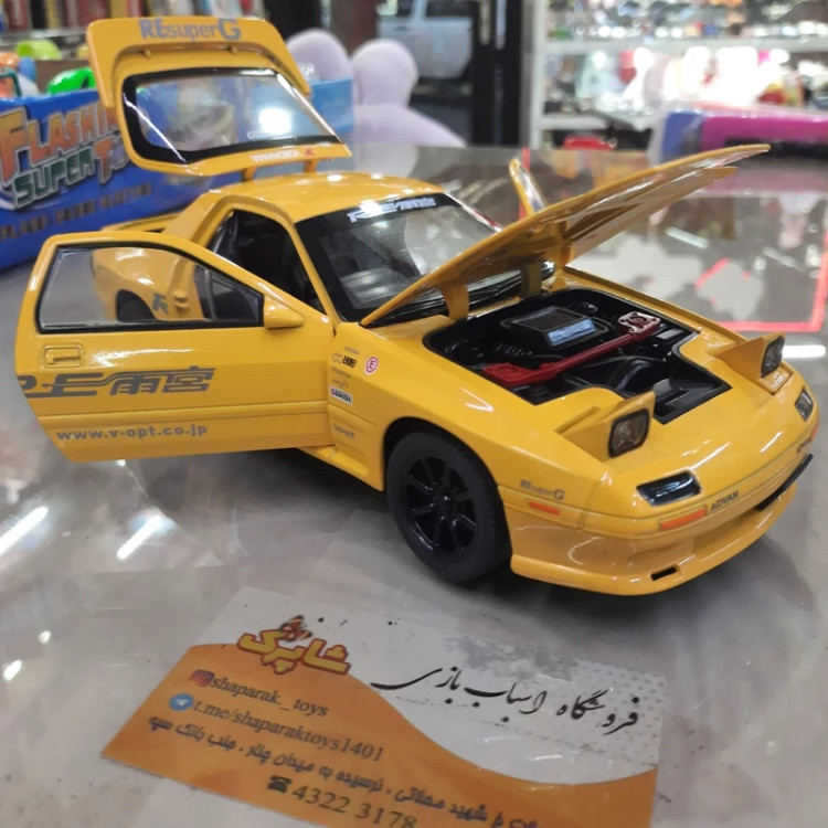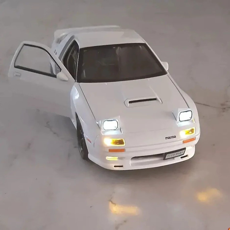 ماکت فلزی مزدا RX سایز 1/24 موزیکال چراغدار ، عقب کش ،چهار در بازشو ،فرمان سمت راست ،استارت خور روی فرمان،فرمان پذیر ، چراغ متحرک ،دکمه سه حالته
