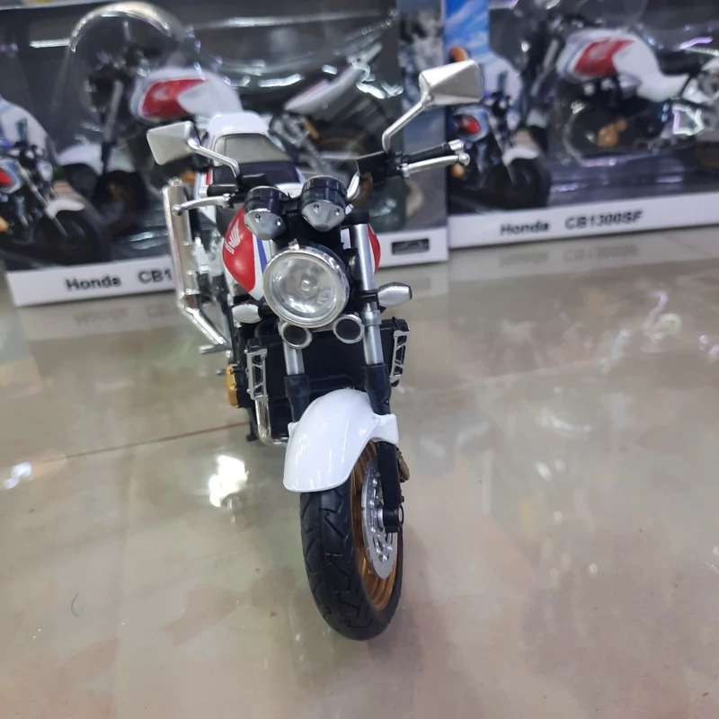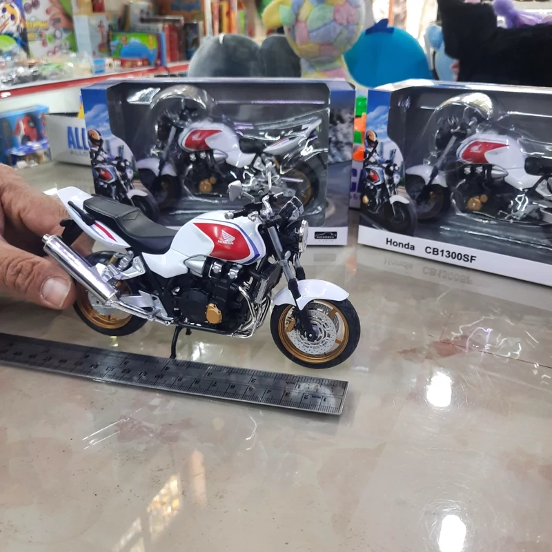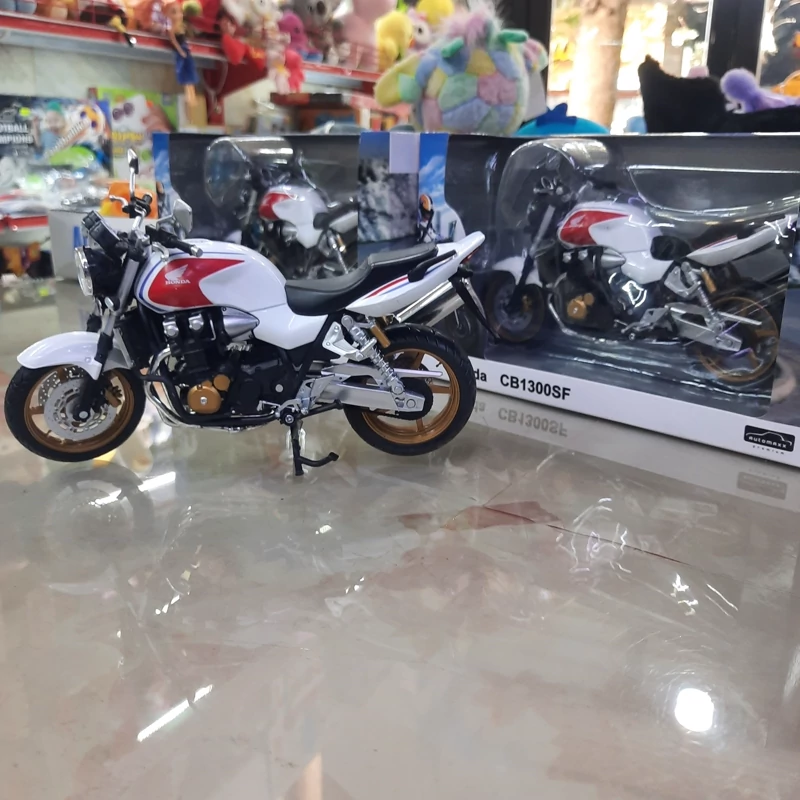 ماکت فلزی موتور هندا CB1300SF با طراحی بسیار زیبا با ریز جزئیات چرخها و فرمان متحرک ، دارای جک وسط،و بغل رنگ سفید قرمز